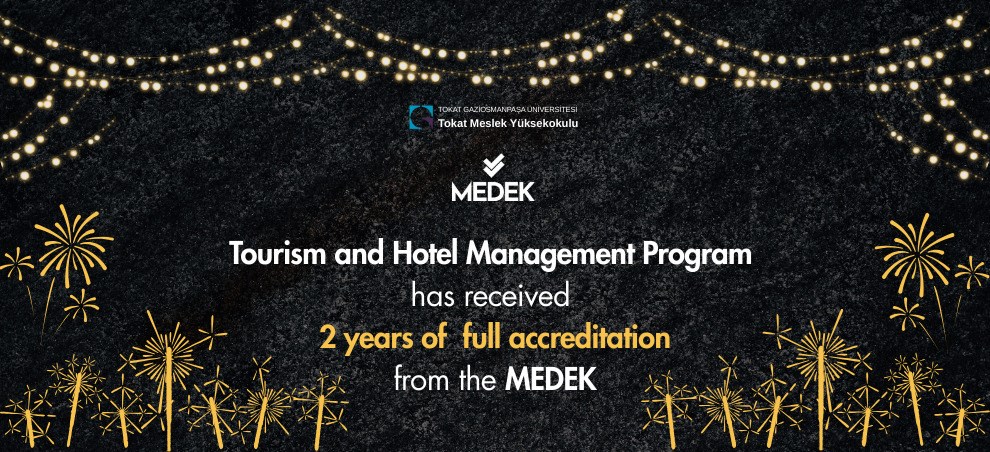 Our Vocational School's Department of Hotel, Restaurant and Catering Services Tourism and Hotel Management Programme has been fully accredited for a period of two years following evaluations conducted by the Vocational Education Evaluation and Accreditation Association (MEDEK).