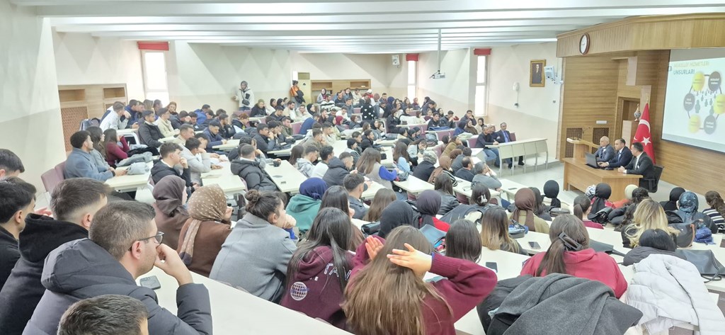 Our Vocational School's Accounting and Taxation Applications Programme held a discussion for first and second-year students, as well as students from other departments/programmes studying at our Vocational School, on the topics of ‘Information on the Structure, Duties and Services Provided by the Revenue Administration Presidency and Career Opportunities’.