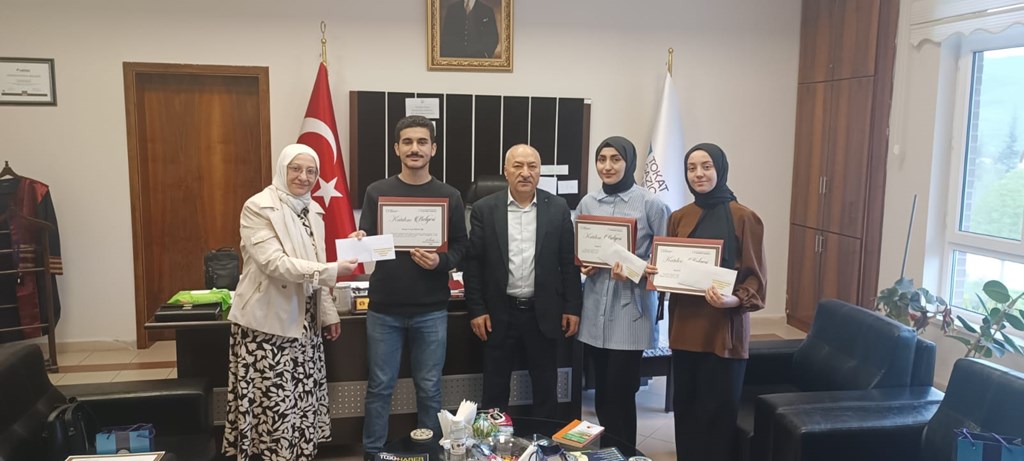 Yarışmaya katılan ve dereceye giren öğrencilerimize; Meslek Yüksekokulumuz Müdürü Prof. Dr. Resul Gerçekcioğlu tarafından Katılım Belgeleri, hediyeleri ve ödülleri takdim edildi.