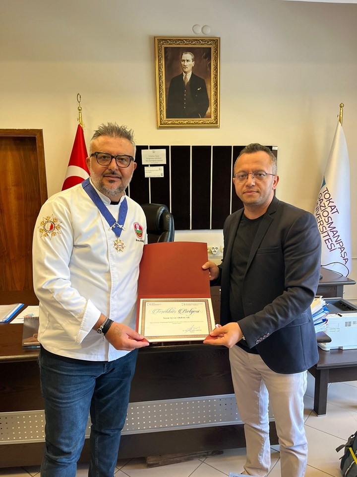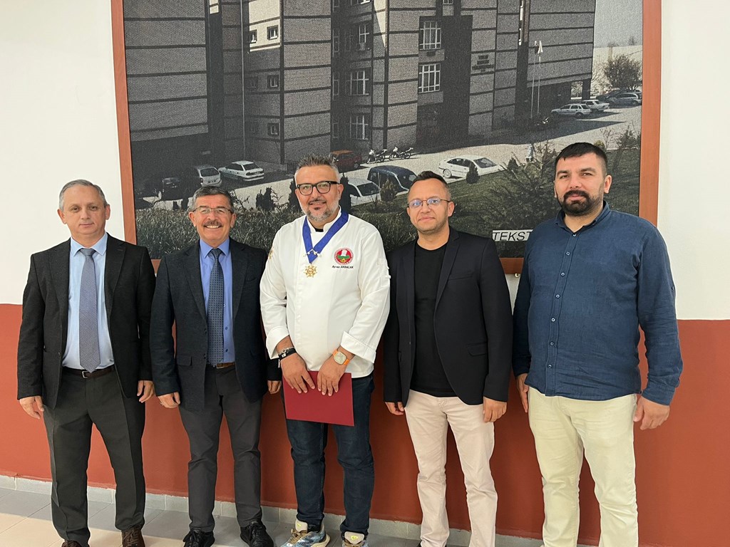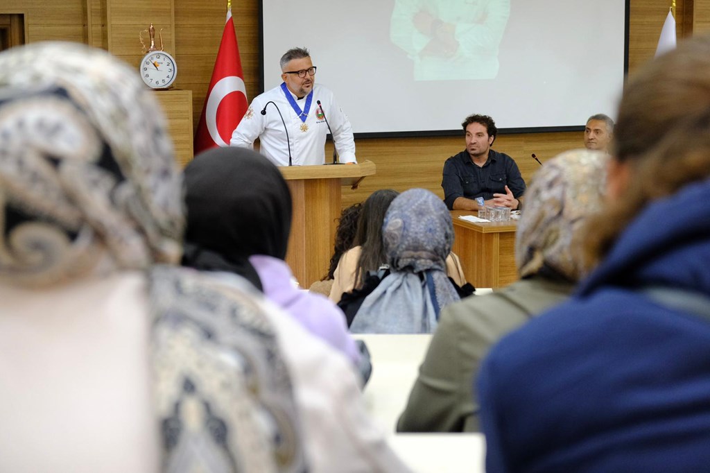 Ünlü Şef Ayvaz Akbacak, “Globalde Türk Mutfağı” söyleşisine konuşmacı olarak katıldı. Tokat Meslek Yüksekokulu Konferans Salonu’nda düzenlenen etkinlikte, Aşçılık Programı birinci ve ikinci sınıf öğrencilerinin yanı sıra Güzel Sanatlar Fakültesi Gastronomi ve Mutfak Sanatları Bölümü öğrencileri bir araya geldi.