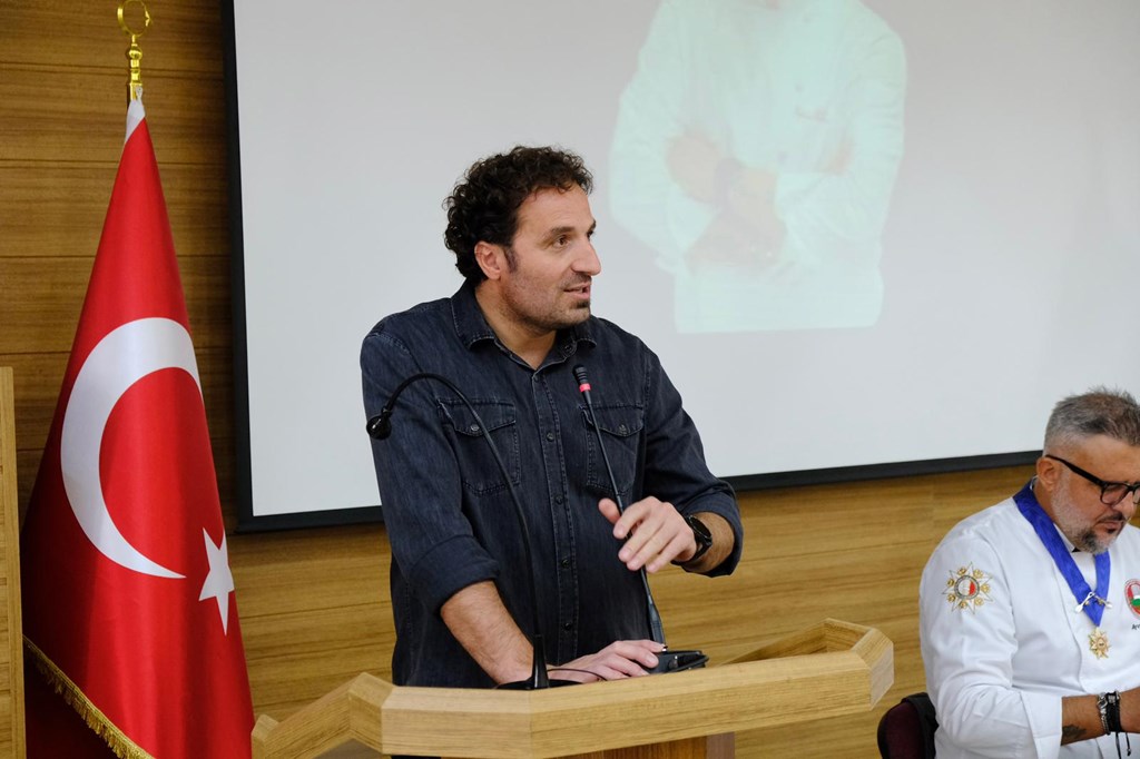 “Globalde Türk Mutfağı” başlığıyla gerçekleştirilen söyleşide Şef Ayvaz Akbacak, Türk mutfağının uluslararası alandaki yeri ve gastronomi dünyasındaki önemine değindi. Türk mutfağının küresel ölçekte tanıtılması ve geleceğe dair perspektifler üzerinde duruldu. Etkinlik öğrencilerden gelen soruların cevaplanmasıyla son buldu.
