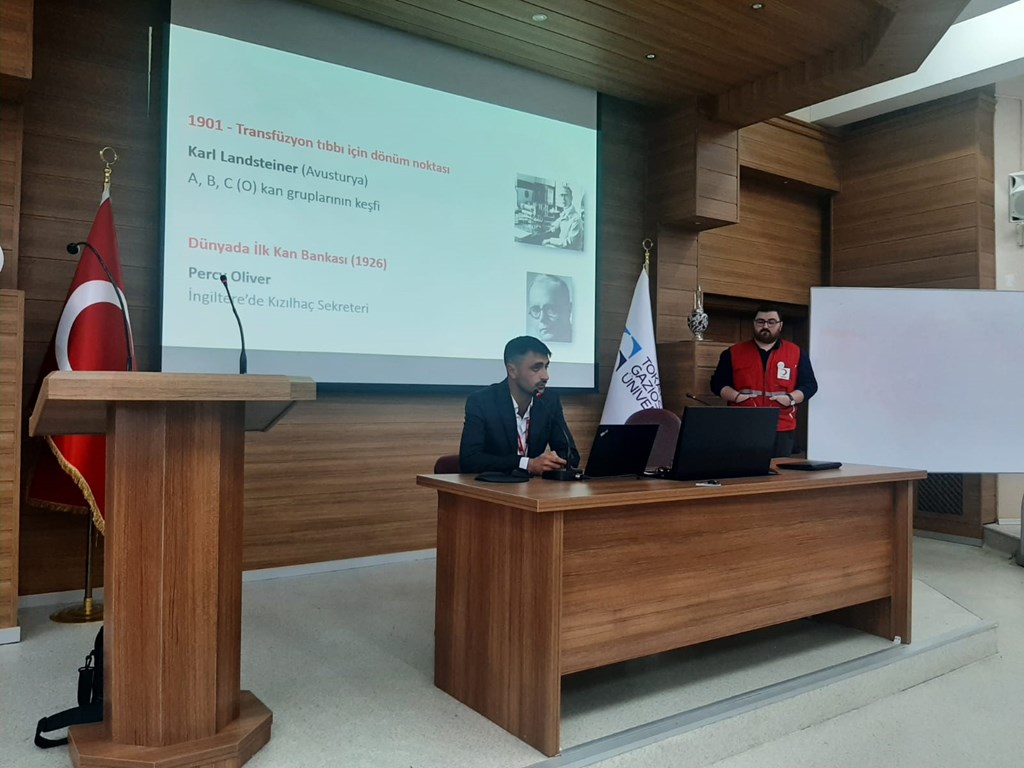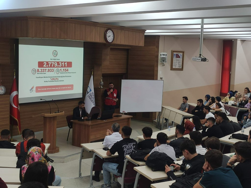 Meslek Yüksekokulumuz öğrenci ve öğretim elemanlarına yönelik, Tokat Kızılay Şubesi Kan Bağışı Kazanım Kordinatörü Hüseyin Avcı ve Kan Elçisi Ahmet Fidan tarafından "Kan Bağışının Önemi" konusunda bilgilendirme sunumu yapılmıştır.