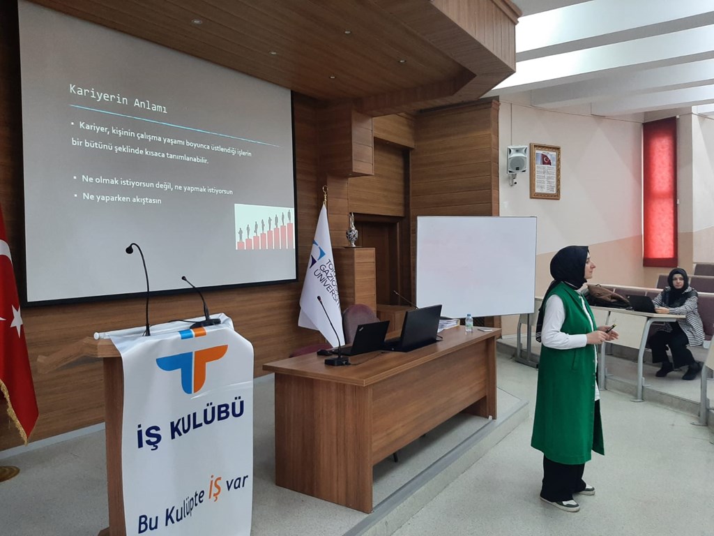 Bu kapsamda; ilk etapta Meslek Yüksekokulumuz Yönetim ve Organizasyon Bölümü İşletme Yönetimi Programı öğrencilerine, Türkiye İş Kurumu Tokat İl Müdürlüğünde görevli İş ve Meslek Danışmanları Süheyla Durmuş ve Berru Daldal tarafından "İş Kulübü" faaliyetleri, "Meslek Seçiminin Önemi ve Kariyer Planlama" konularında eğitim verildi.