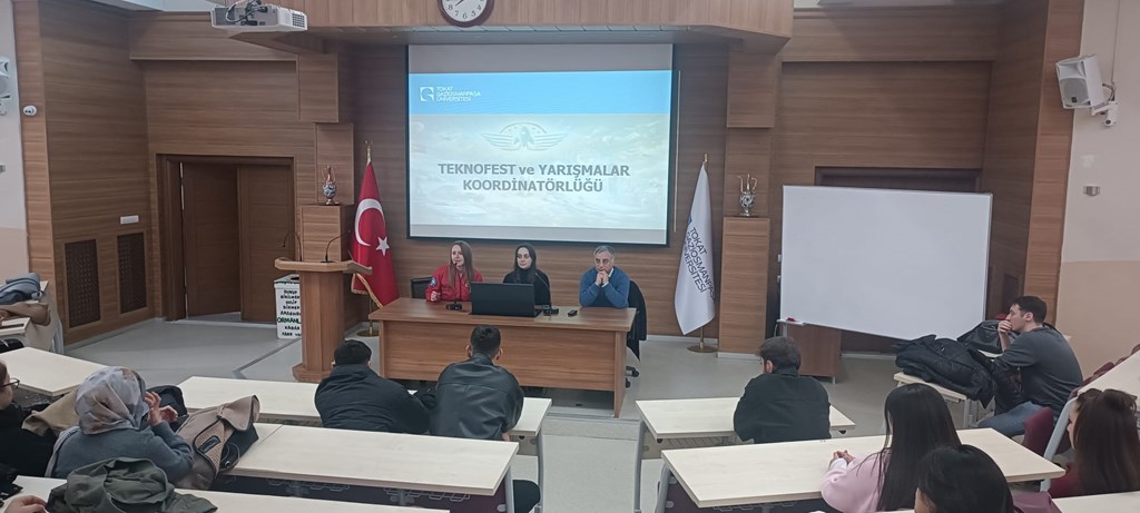 Teknofest ve Yarışmalar Koordinatörü Doç. Dr. Levent Gökrem'in katılımları ve Teknofest ve Yarışmalar Koordinatör Yardımcısı Arş. Gör. Elif Bulut ile Teknofest Kurumsal Koordinasyon Temsilcisi Arş. Gör. Yasemin Boy'un sunumlarıyla; proje geliştirme sürecinde, fikir aşamasından yarışmalara kadar izlenecek yol hakkında öğrenci ve akademisyenlere bilgilendirme yapıldı.